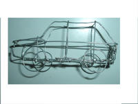 Cette oeuvre est une voiture entièrement réalisée en fil de fer,soudé.Elle m'a été inspirée de l' anciènne voiture de ma maman,une golf .Je l'ai baptisée "l'ototomobil"