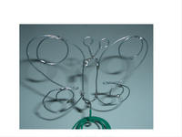 Cette oeuvre est un papillon monté sur ressort ,il a été réalisé en fil de fer soudé, il a été particulièrement difficile à faire car il a beaucoups de pièces à souder. Je l'ai monté sur ressort ,ce qui lui donne un effet de vivant, au moindre courant d'air. Je l'ai baptisé "LE PAPAPILLON"